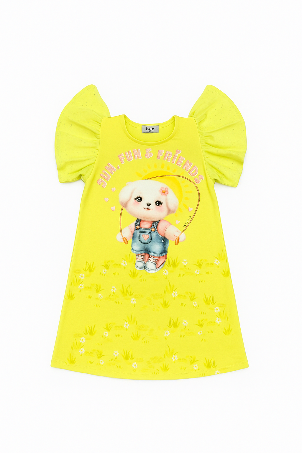 Vestido Feminino Infantil Verde Neon Cachorro - Kukie - Ref 93840