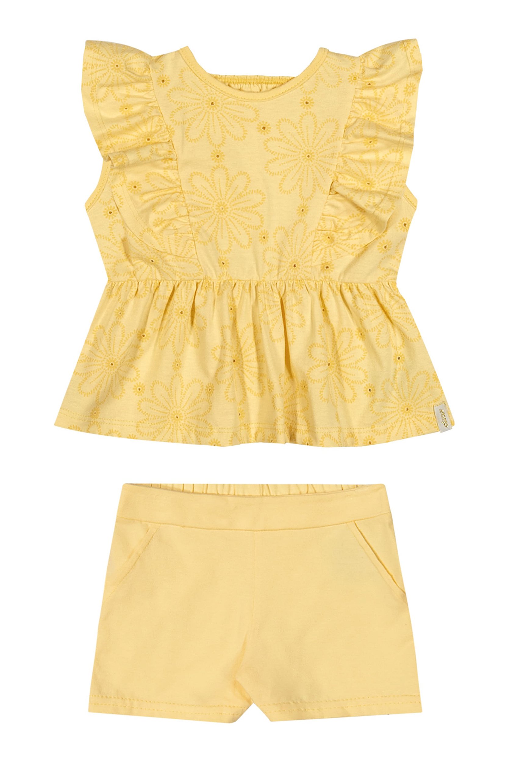 Conjunto Feminino Infantil Blusa Bata e Short Amarelo - Elian - Ref 211628