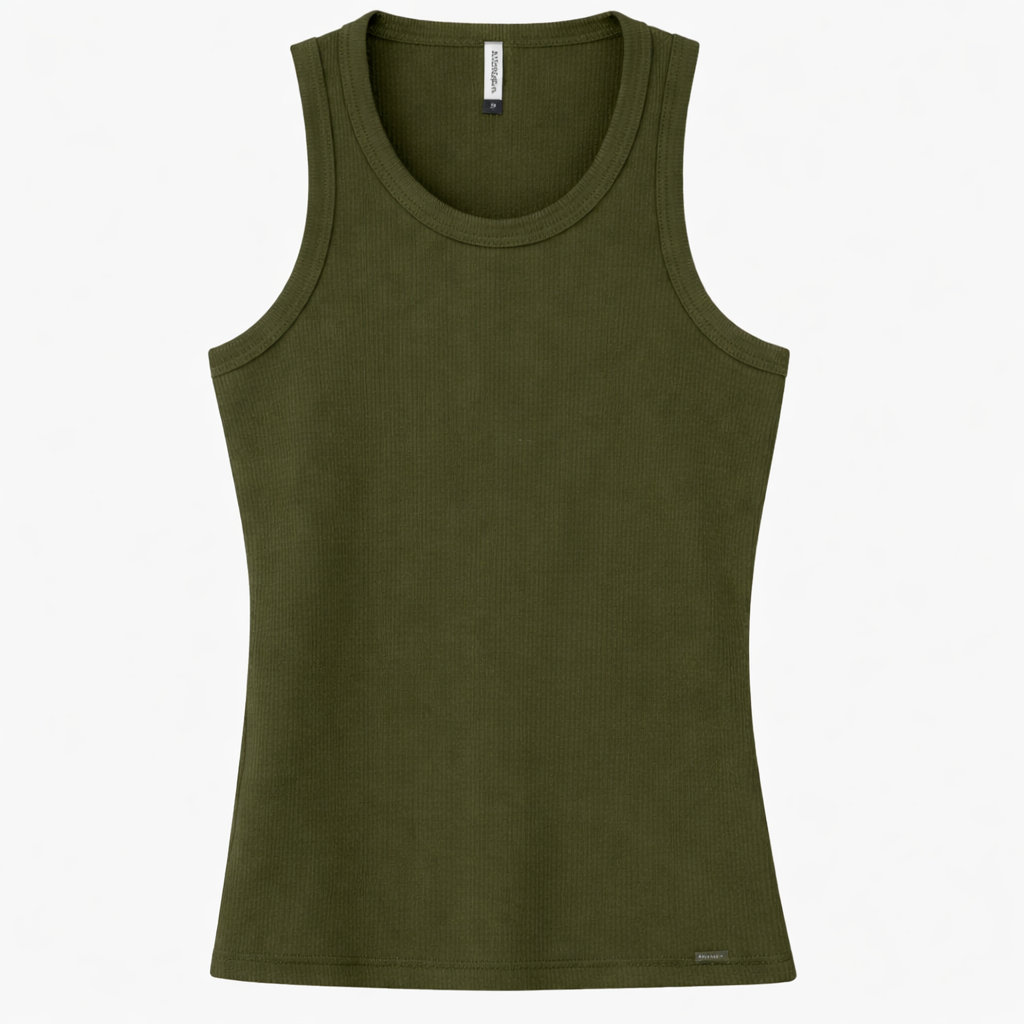 Blusa feminina regata nadador básica canelada com alças largas, Decote redondo, Comprimento regular. Confeccionada em malha dublada canelada, Peça perfeita para compor looks cheio de estilo sem perder o conforto.