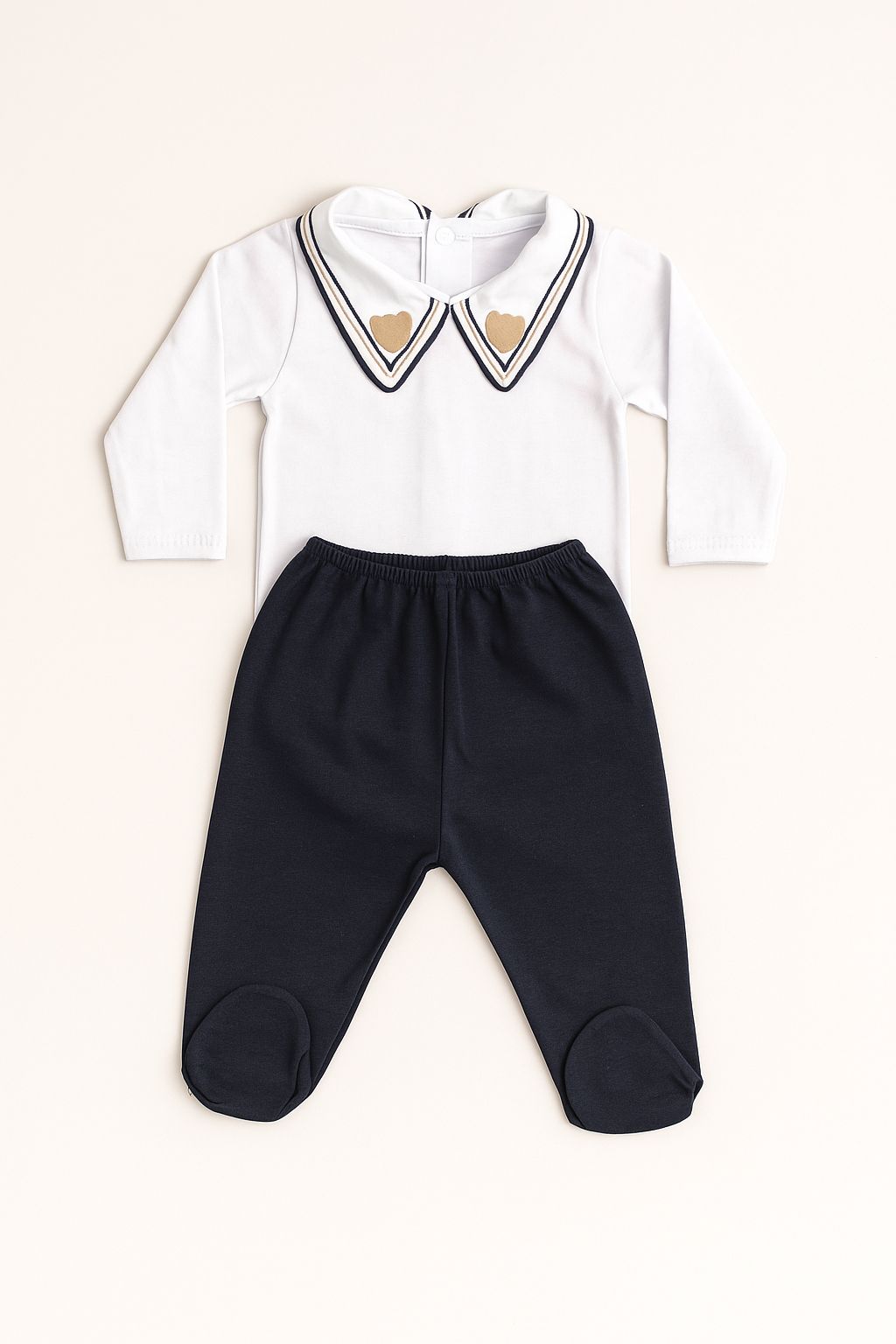 Conjunto Bebe Menino Com Body Gola Bordada e Mijão Com Pezinho - Bilu Teteia