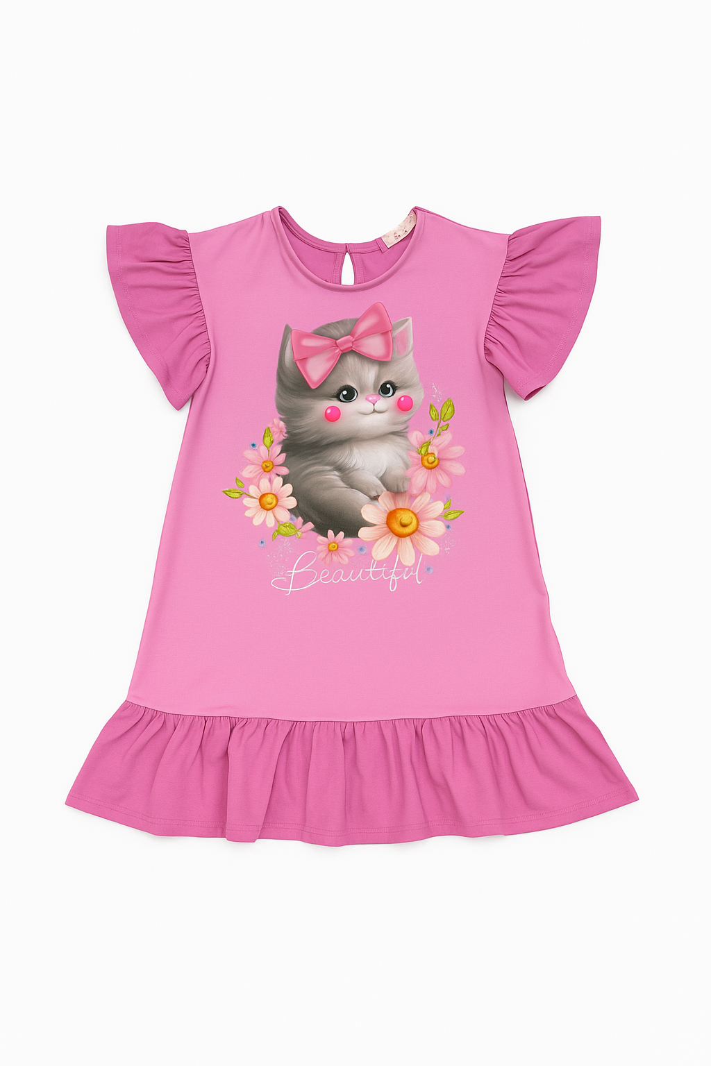 Vestido Feminino Infantil Rosa com Estampa Gato - Kukie - Ref 94020