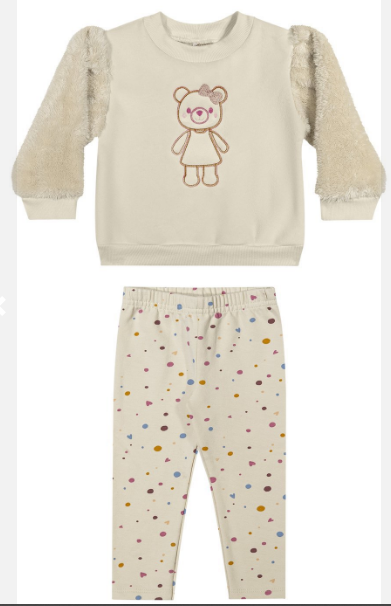 Abrigo Infantil Feminino Bebê Off Com Pelinho Urso - Elian - Ref 211678