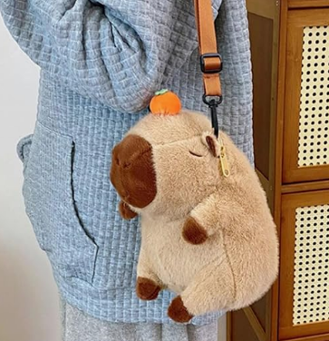 • A bolsa casual de capivara realista tamanho 35 cm é perfeita para escola, viagens e uso diário.
