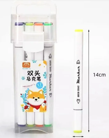 Cores das canetas: vermelho, rosa, rosa pink, roxo, amarelo, verde claro, verde, azul, marrom claro, marrom escuro, cinza e preto.